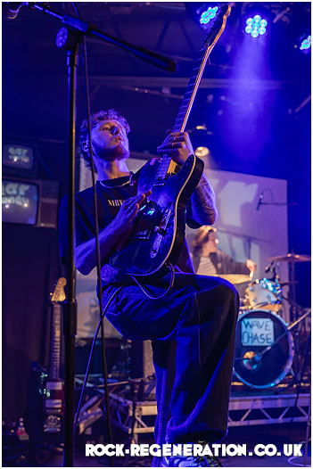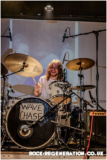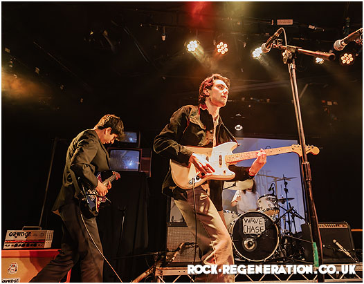 Chants of “We love you Wave Chase, we do!” echo around the venue — more football terrace than gig night, as the 300-strong crowd builds a celebratory atmosphere before the band even take to the stage. Then comes the intro: Frank Sinatra’s “My Way” playing over the PA — “And now, the end is near…” — a perfectly chosen moment.